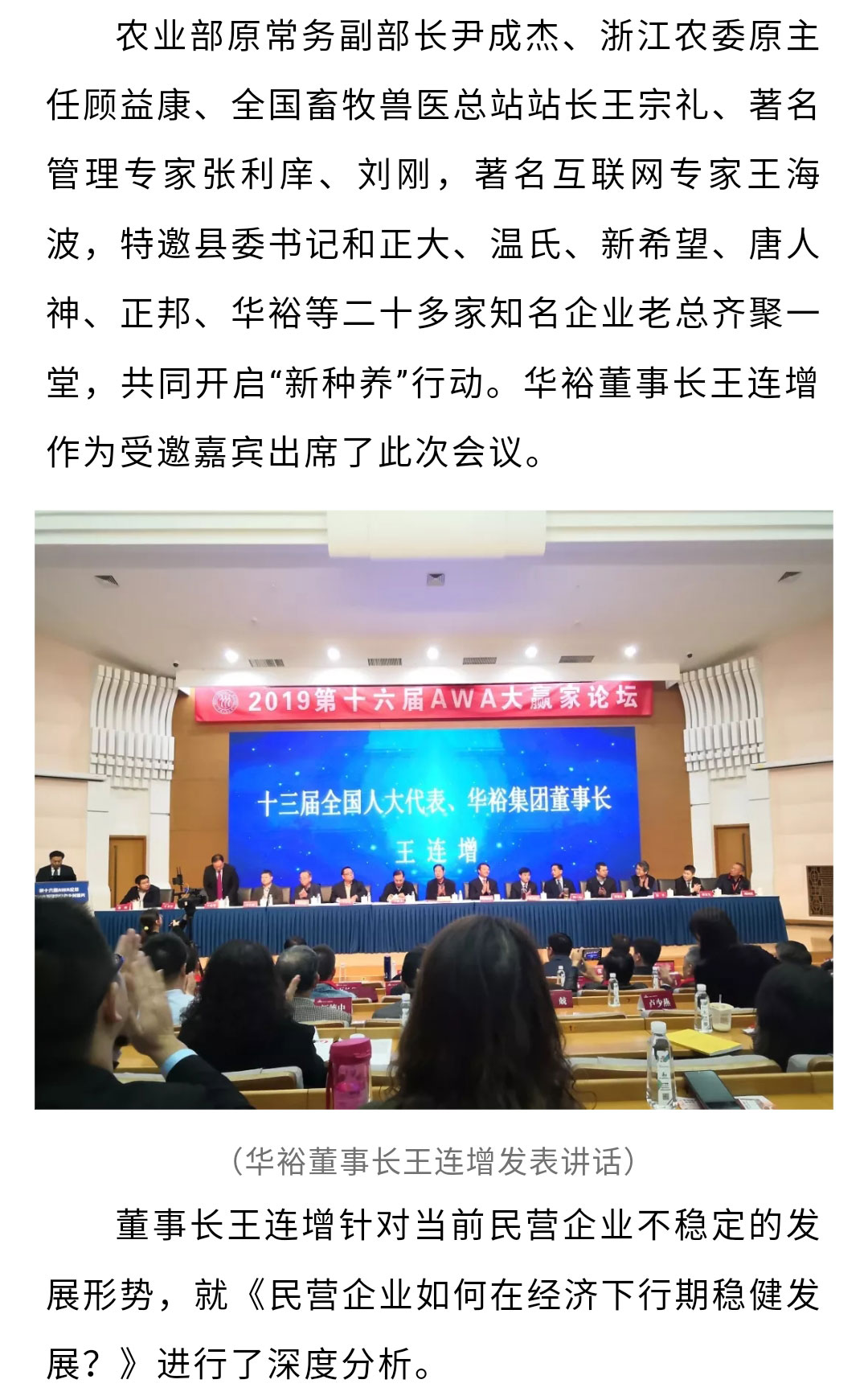 新種養、新消費助力鄉村振興——華裕董事長王連增出席第十六屆大贏家AWA論壇