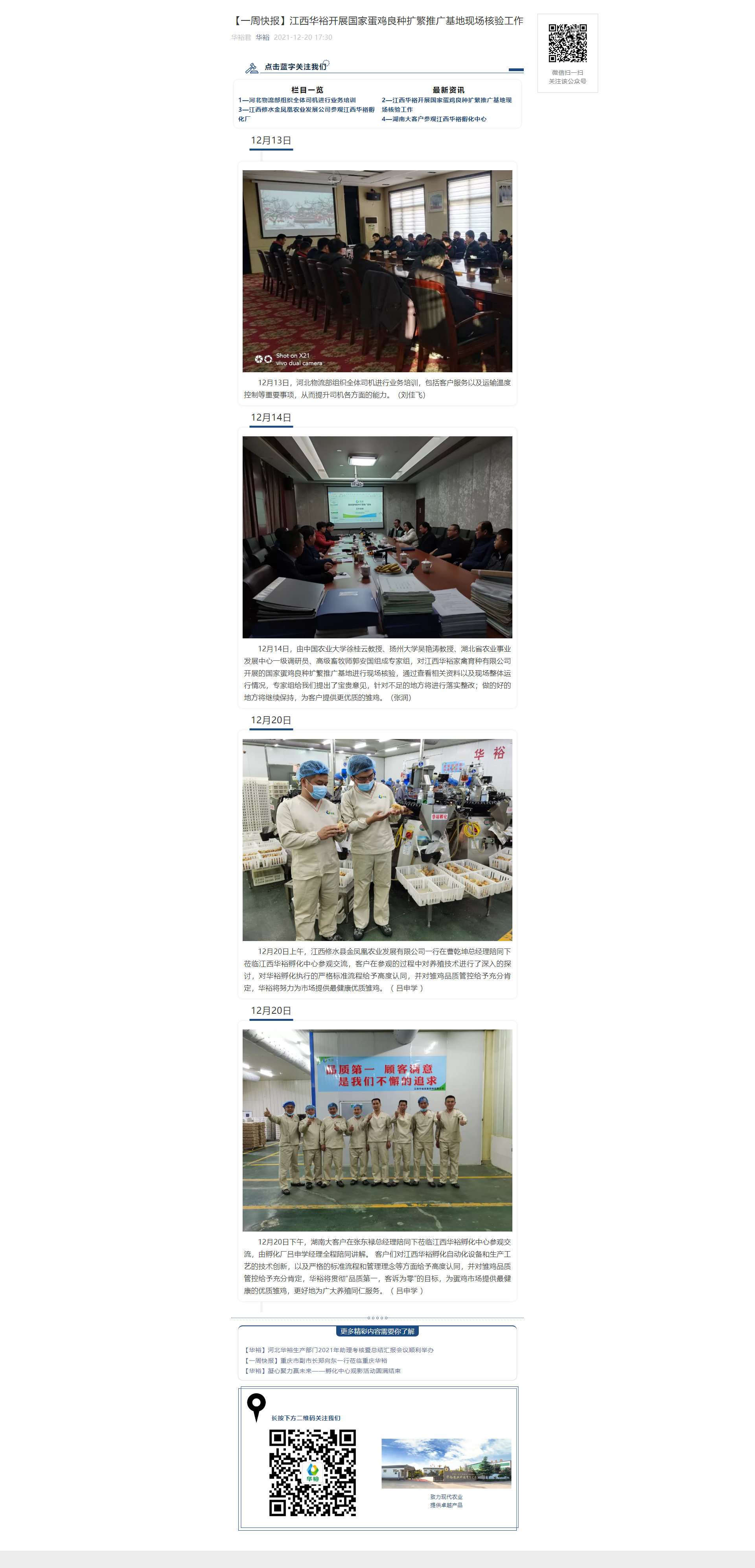 【一周快報】江西華裕開展國家蛋雞良種擴繁推廣基地現場核驗工作