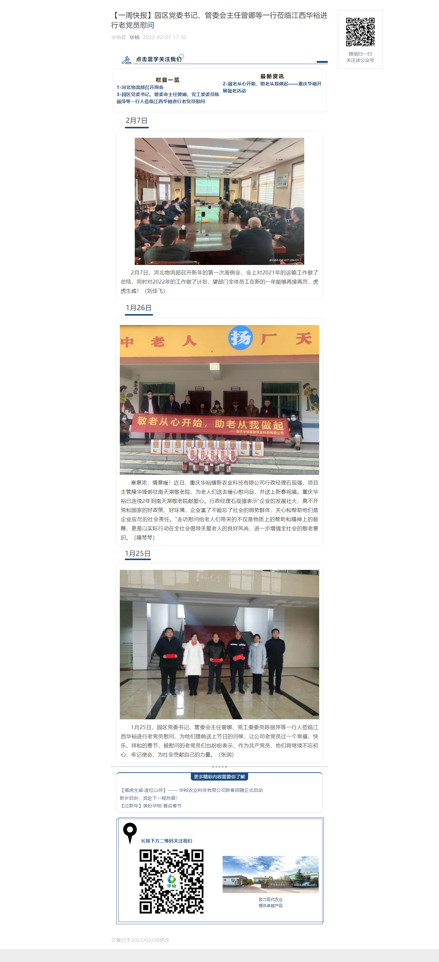 【一周快報(bào)】園區(qū)黨委書記、管委會(huì)主任曾娜等一行蒞臨江西華裕進(jìn)行老黨員慰問